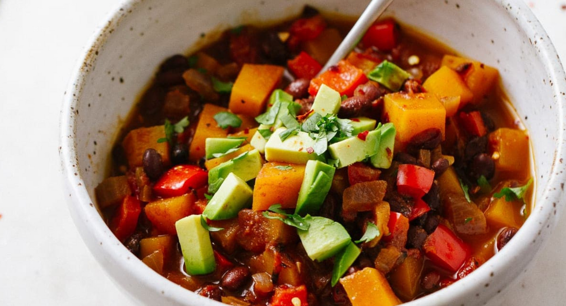 Long story short - I found this recipe years ago on a website that I can't currently find anymore, but I wanted to share it with you all. It is a vegan chili that packs a punch, with plenty of protein and all the savory goodness of warm spices, and just a hint of that fall color and flavor, it's a go to meal that's both easy and satisfying.