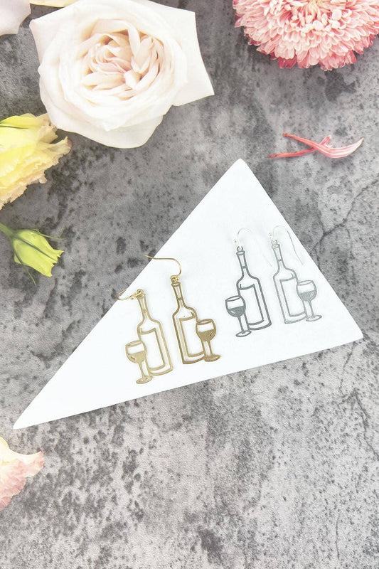Wine Bottle and Glass Hook Earring