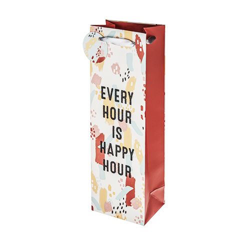 - Design: “Every Hour Is Happy Hour” printed in bold typography, ribbon handles, and gift tag included