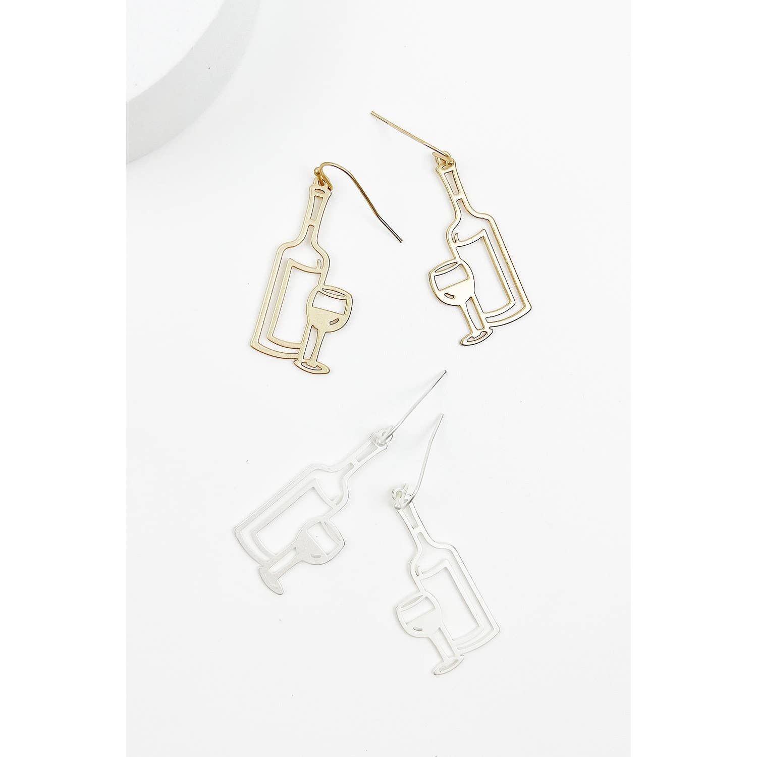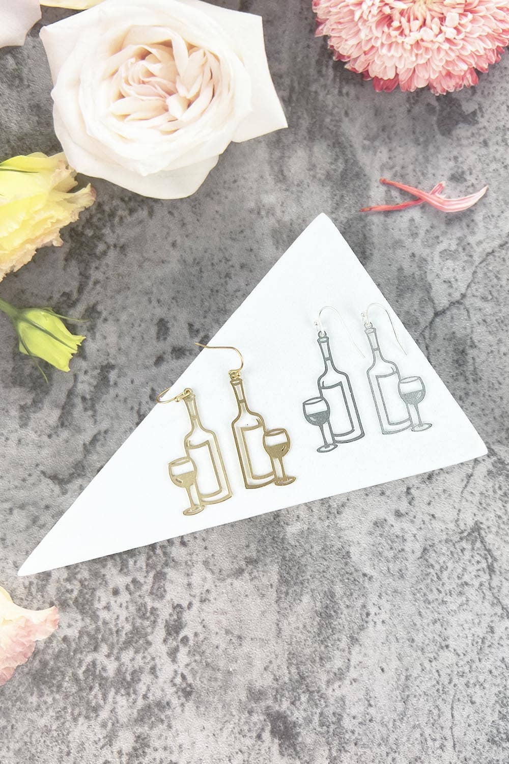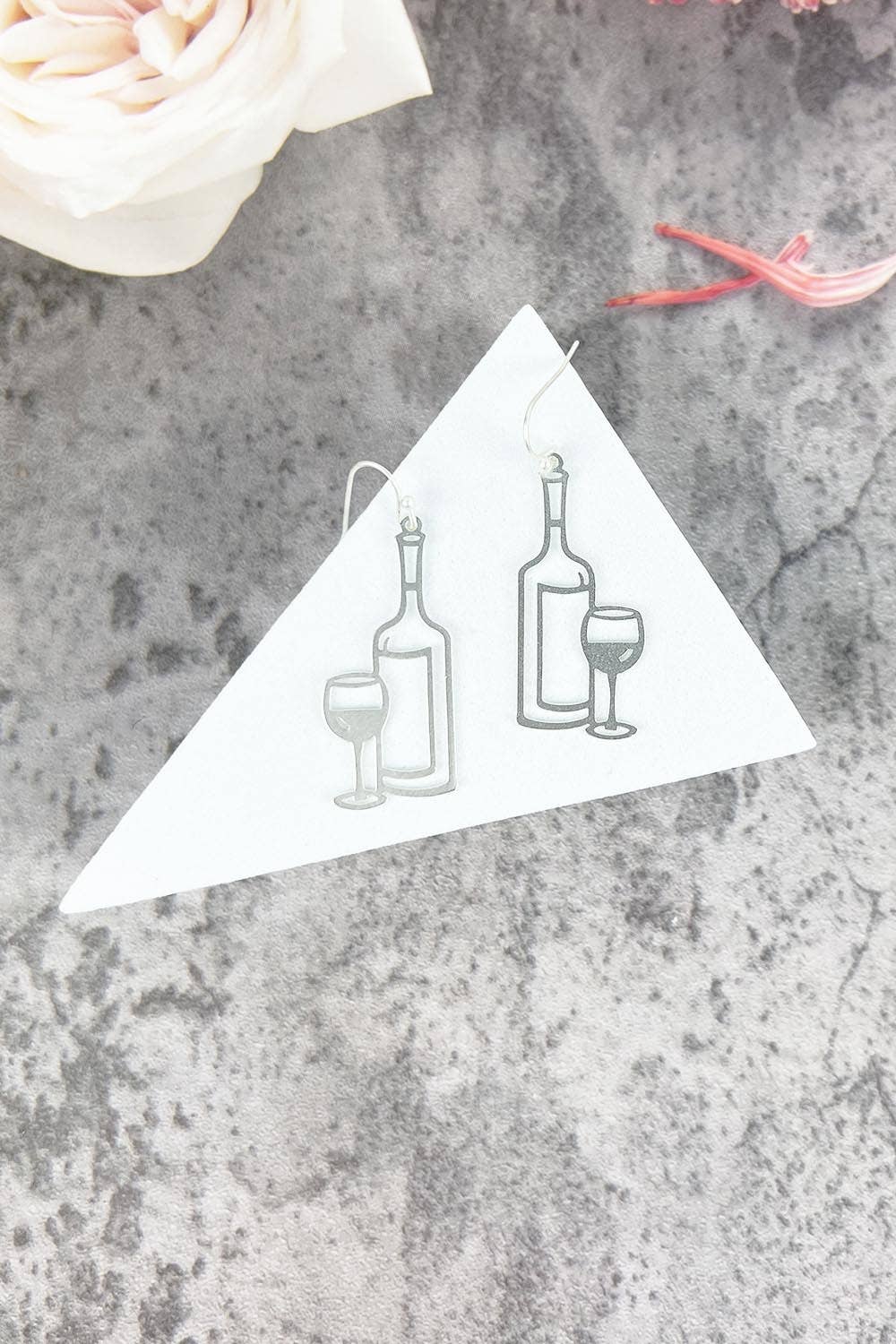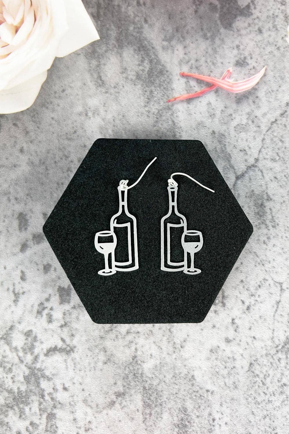 Show off your love for wine in style with these whimsical Wine Bottle and Glass Hook Earrings. Featuring a playful design of a tiny wine bottle paired with a matching wine glass, these earrings are lightweight, fun, and perfect for wine lovers with a sense of humor and flair.